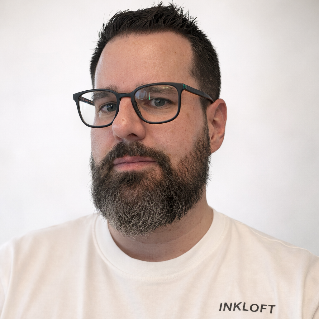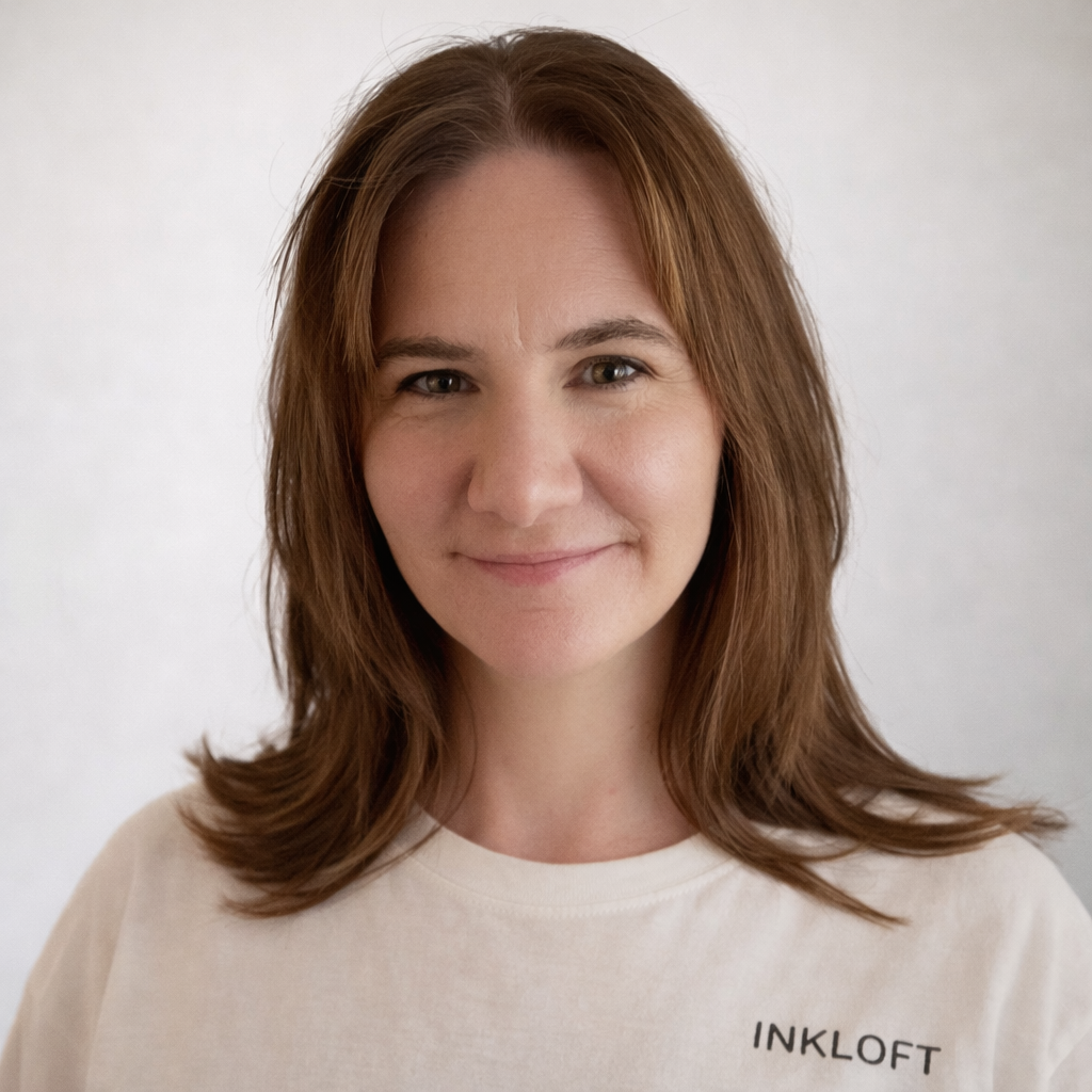 Bei Inkloft gestalte, drucke und veredele ich jedes Produkt selbst. Jede Tasse, jedes Shirt und jeder personalisierte Artikel geht durch meine Hände und wird sorgfältig geprüft, bevor er verpackt wird. Qualität, Präzision und ein Auge fürs Detail sind mir wichtig – und genau das soll man jedem Produkt ansehen.